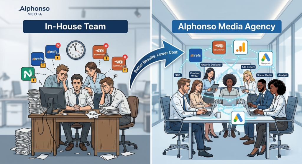 In 2026, businesses that grow fastest are the ones that move quickly and work with professionals. For most businesses in the USA, opting for a digital marketing agency such as Alphonso Media is often the most cost-effective option. This way you will get a professional team of specialists, access to premium tools, proven strategies, and scalable results.